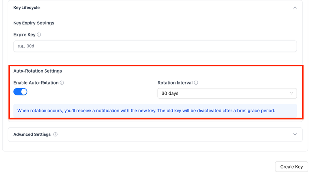 LITELLM_KEY_ROTATION_ENABLED=true - Configure check interval - Optionally set