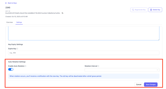 now + rotation_intervaland stores it in the database - A background job periodically checks for keys where the rotation time has passed